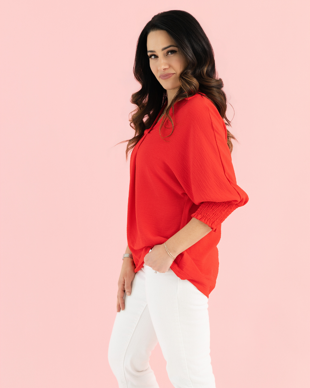 Anna Sweetheart Ruched Ribbed Long Sleeve Top