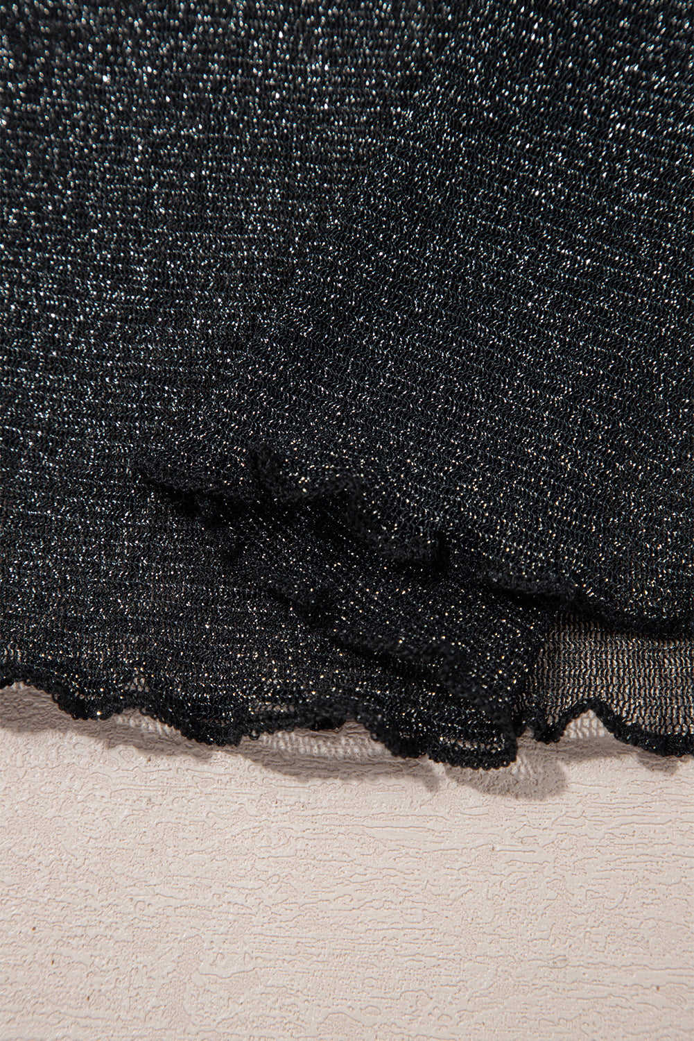 Metallic Glitter Sheer Mesh Long Sleeve Top