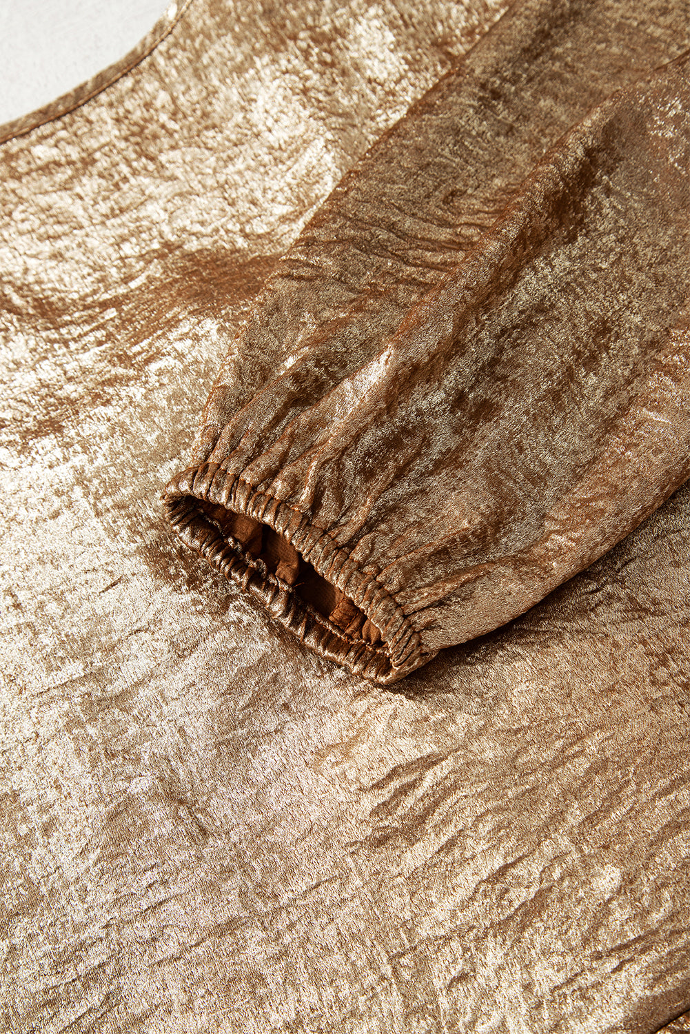 Golden Metallic Ribbon Front Baby Doll Blouse