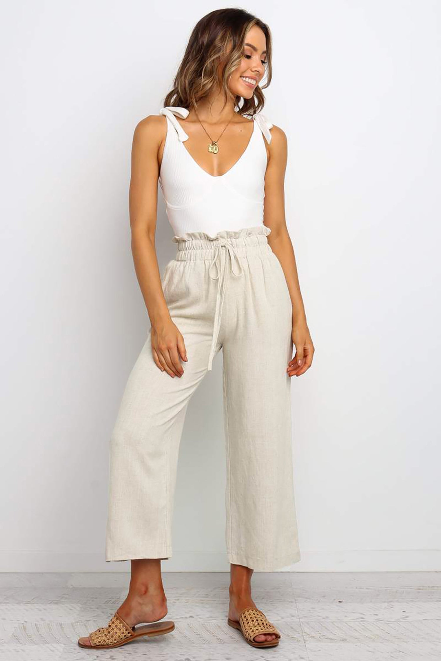Effortless comfort meets contemporary style with the Tanya Paperbag Tie Waist Cropped Pant. Crafted from lightweight 100% polyester, these casual pants feature a chic paperbag waist with adjustable drawstring and subtle elasticity for all-day ease. The straight silhouette, cropped length, and functional side pockets create a modern, flattering fit that pairs seamlessly with any top—from fitted tees to oversized sweaters and jackets. A versatile wardrobe essential for the modern woman.